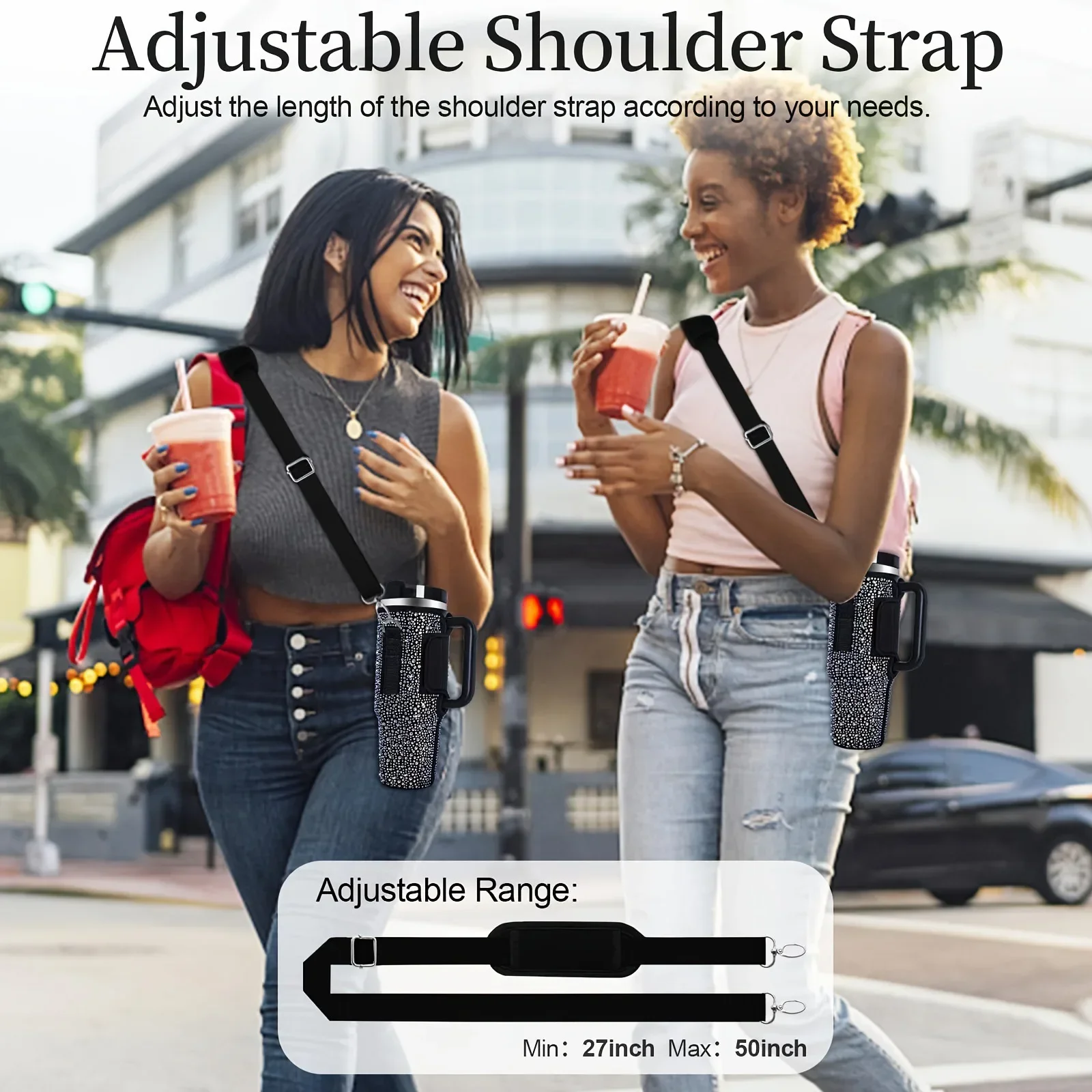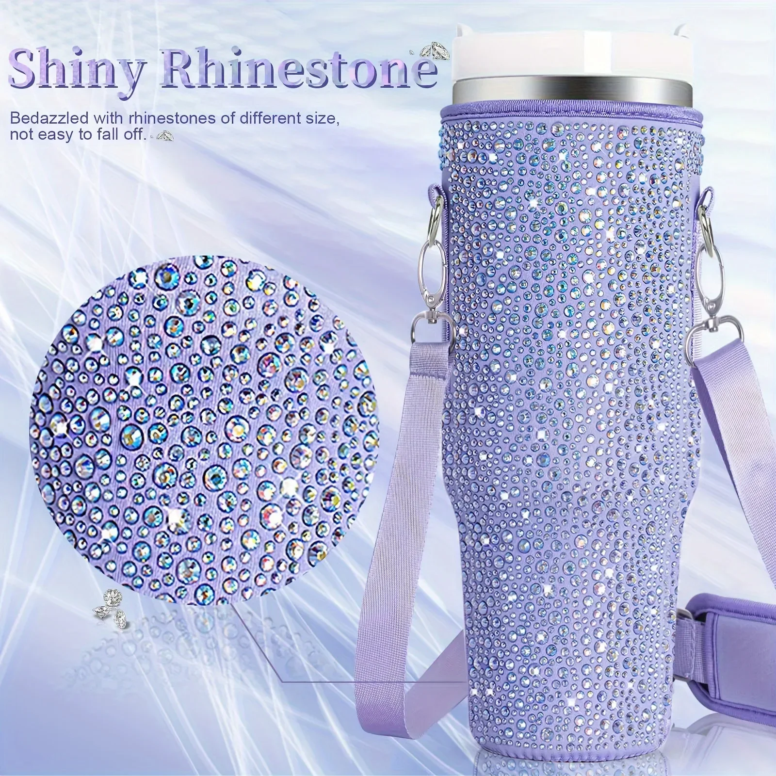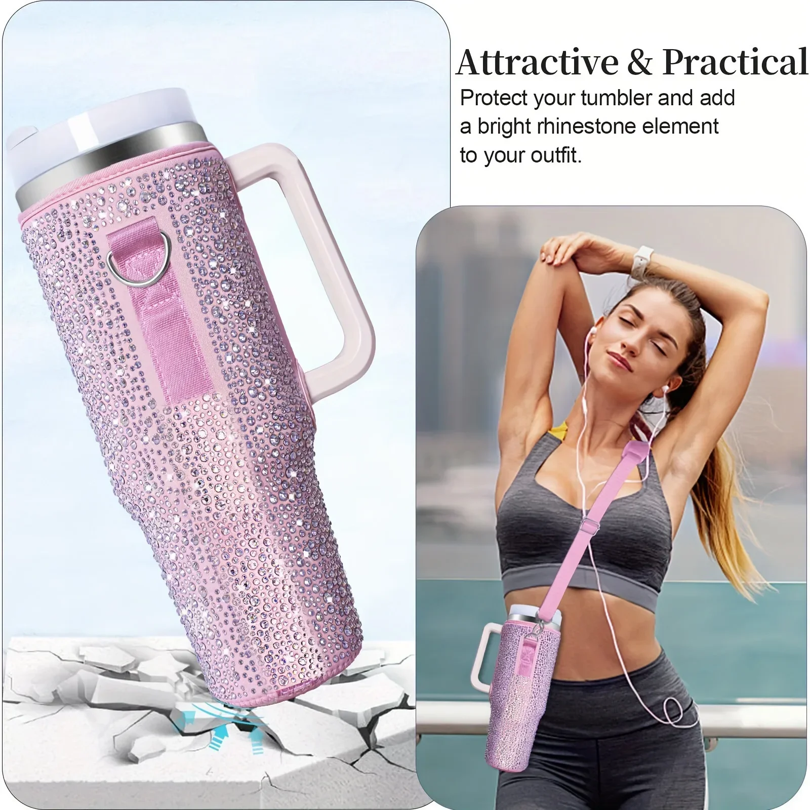 40oz bling shiny rhinestone Water Bottle Bag protecting case For Stanley Quencher Cup Sleeve Strap Pouch
